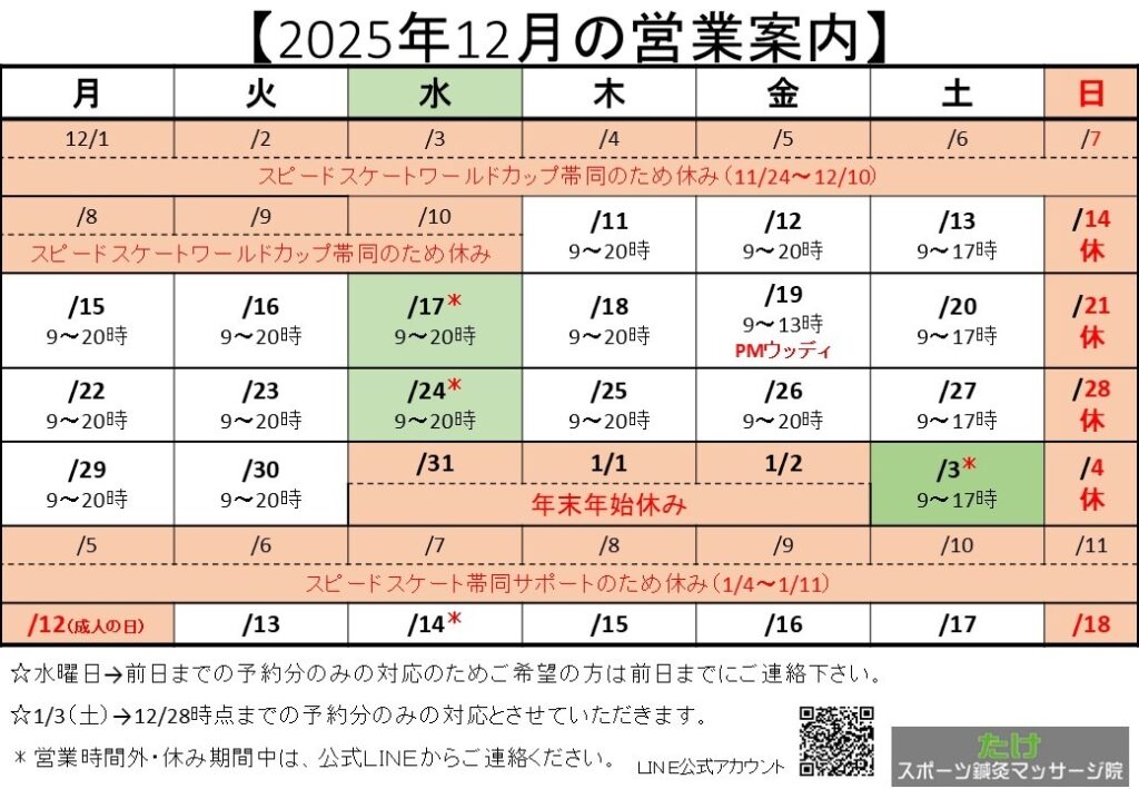 【2025年12月の営業案内】