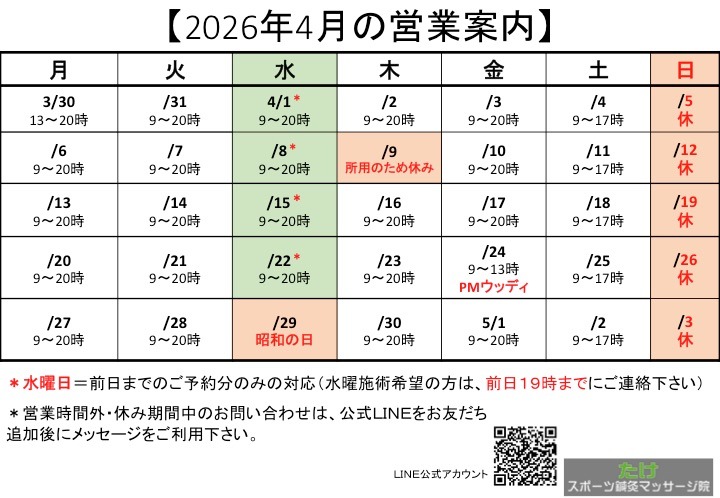 【2026年4月の営業案内】